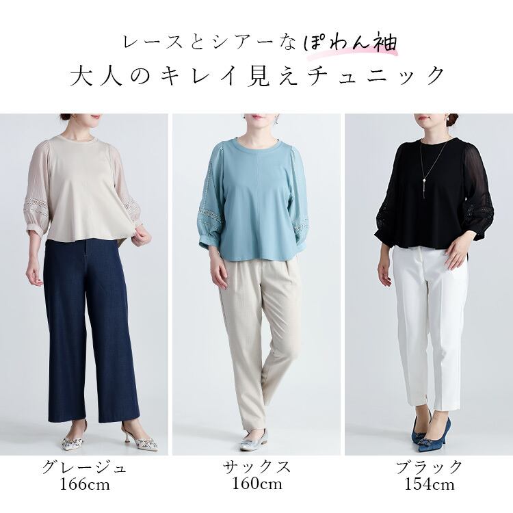 このレース使いポアン袖チュニックで、春夏のスタイルを華やかに演出してみてはいかがでしょうか?